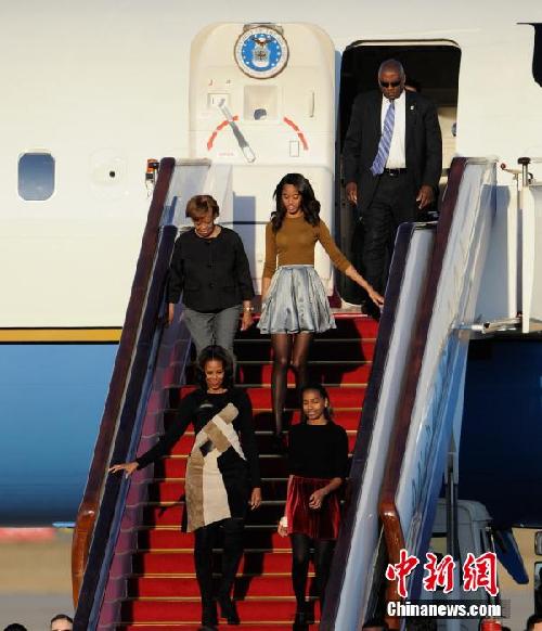 3月20日,美國(guó)總統(tǒng)奧巴馬的夫人米歇爾·奧巴馬乘專(zhuān)機(jī)抵達(dá)北京,開(kāi)始對(duì)中國(guó)的訪問(wèn)。同機(jī)抵達(dá)的還有米歇爾的母親瑪麗安·羅賓遜和兩個(gè)女兒瑪利亞和薩沙。侯宇攝