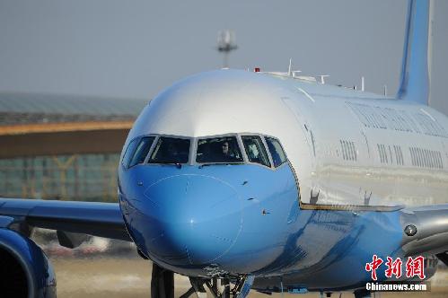3月20日,美國(guó)總統(tǒng)奧巴馬的夫人米歇爾·奧巴馬乘飛機(jī)抵達(dá)北京,開(kāi)始對(duì)中國(guó)的訪問(wèn)。同機(jī)抵達(dá)的還有米歇爾的母親瑪麗安·羅賓遜和兩個(gè)女兒瑪利亞和薩沙。圖為米歇爾·奧巴馬乘坐的專(zhuān)機(jī)。侯宇攝