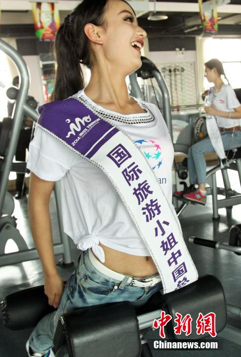 4月30日,2014國際旅游小姐中國區(qū)總決賽在河南鄭州拉開帷幕,來自江蘇、浙江、四川、云南、湖南、湖北、以及黑龍江、吉林等地的48位參賽佳麗將角逐最佳微笑小姐等單項(xiàng)獎(jiǎng)。圖為參賽佳麗在健身俱樂部進(jìn)行賽前健身。