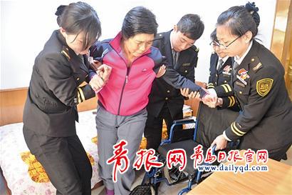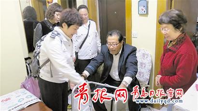 雖然這是一個冷雨天,但當交運文化傳媒公司和海博出租車公司的志愿者把輪椅搬到隋學英老人六樓家中時,他們還是累得滿頭大汗。一進家門,顧不上喘口氣就開始忙著給老人組裝起來。