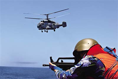 5月23日,中國海軍艦載直升機(jī)起飛前出對“被劫持船舶”進(jìn)行偵察