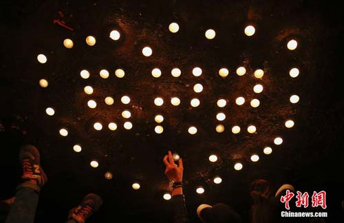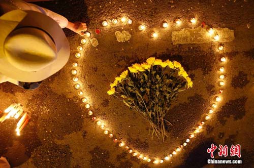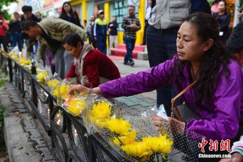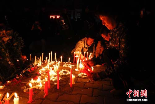 5月23日晚,新疆烏魯木齊市民眾攜帶菊花和蠟燭前往該市公園北街,自發(fā)悼念這里在“5.22”暴力恐怖事件中的遇難者