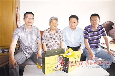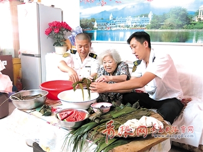 ?青島日?qǐng)?bào)/青報(bào)網(wǎng)訊 忙完手頭的工作,市北地稅分局的李琳已是大汗淋漓,月底的幾天是她們工作最忙碌的時(shí)候。5月30日中午,利用休息的空當(dāng),她和兩名同事還是乘車準(zhǔn)時(shí)來(lái)到南山社區(qū)路致芬老人家。因?yàn)檫^(guò)兩天就是端午佳節(jié)了,她們想給獨(dú)居的路阿姨送去節(jié)日的祝福。