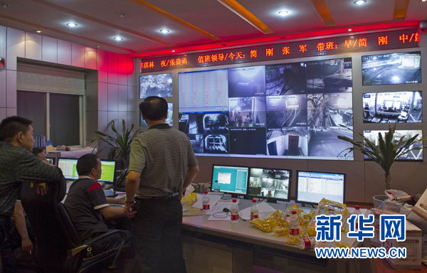 6月3日,在重慶市萬(wàn)盛區(qū)南桐礦業(yè)公司硯石臺(tái)煤礦事故搶險(xiǎn)指揮部,救援人員通過(guò)監(jiān)控室調(diào)度救援力量。當(dāng)日17時(shí)40分,硯石臺(tái)煤礦井下4406S2回采工作面發(fā)生一起重大瓦斯事故,造成22人死亡。 新華社記者陳誠(chéng)攝
