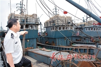 ■自6月1日伏季休漁期以來,已有16艘違反伏季休漁規(guī)定的外地漁船在我市海域違規(guī)出海作業(yè)而被依法查獲。在黃島區(qū)魯海豐碼頭停泊了其中9艘。劉麗娜 攝