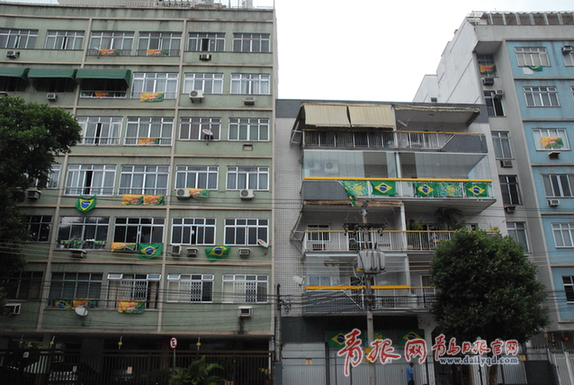 #前線直擊#里約的建筑物上,球迷已經(jīng)迫不及待地將巴西國(guó)旗懸掛在陽(yáng)臺(tái)、窗外,一次表達(dá)對(duì)國(guó)家隊(duì)的支持。
