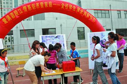 ??? “以愛育愛,讓愛傳遞。”學(xué)校把“教育,以愛的名義”作為德育品牌,充分發(fā)揮“全國最美鄉(xiāng)村女教師”薛躍娥老師的示范帶動作用,把老師的愛傳遞給孩子們。2012年5月,學(xué)校602班趙恩雪的媽媽在懷有7個月身孕時突發(fā)腦溢血,重度昏迷。隨后,一對雙胞胎孩子早產(chǎn),發(fā)育不夠成熟,急待救治。一家三口生命危在旦夕,使這個以靠收廢品為生的家庭雪上加霜。得知情況后,嘉一小老師帶領(lǐng)學(xué)生、家長迅速行動起來,獻(xiàn)詩、義賣、募捐……行動經(jīng)媒體報道后,在社會上影響很大。一名采訪報道此事的記者曾說:“‘嘉一小’用愛的力量傳播出了無限的正能量,溫暖著每一位學(xué)生的心靈,最終幫助學(xué)生及家庭渡過難關(guān)。”