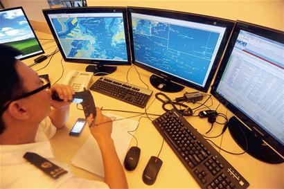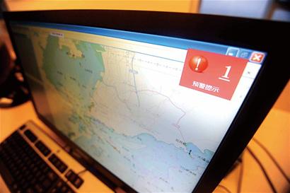 交管中心的工作人員現(xiàn)場做了演示,記者看到,在實時海圖上兩個船形的圖標在一點點地移動,看起來離得比較遠,但突然“滴滴……”報警聲響起,工作人員立即通知兩艘船注意航向。 “這兩艘船雖然離得比較遠,但是,兩艘船的航行軌跡最終有可能相交,就有碰撞的危險。 ”工作人員說。