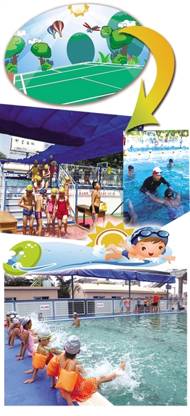 “拆裝式移動(dòng)游泳池”搬到學(xué)校操場(chǎng)上