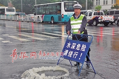 青島日報(bào)/青報(bào)網(wǎng)訊 7月23日清晨市區(qū)部分區(qū)域突降大雨,伴隨交通早高峰的到來,我市交警部門快速反應(yīng),在全市各易積水路段派警力看守,主要路口加強(qiáng)交通疏導(dǎo),未發(fā)生較大道路交通事故。