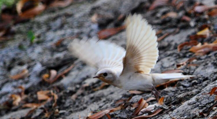 當(dāng)日,一只白色的小燕子出現(xiàn)在青島市黃島區(qū)煙臺路附近,并有黑色的燕子一起伴飛,引起了市民的好奇。據(jù)發(fā)現(xiàn)白色小燕子的李師傅介紹,他每天下班會經(jīng)過一條小河,這只白色的燕子經(jīng)常在這里覓食。