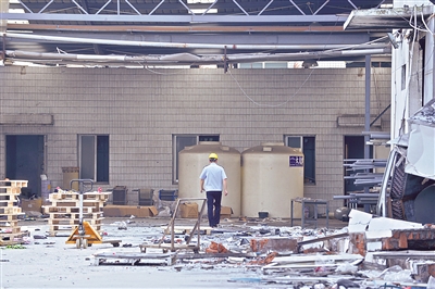 新華社記者13:00在發(fā)生爆炸的車間門口看到,車間中部位置外墻損傷嚴(yán)重,爆出兩個(gè)大洞。車間所有玻璃碎裂,部分墻體只剩下鋼筋結(jié)構(gòu)。在車間門口,隨地可以看到衣物、鞋子等,該車間的外墻部分被爆炸引起的煙火熏黑。爆炸車間對(duì)面的車間,也受到不同程度波及,在爆炸中心50米左右地上都是碎玻璃,爆炸的車間有一處圍墻坍塌,爆炸沖擊波把重型設(shè)備炸出了車間外墻。玻璃和部分塑料棚損毀。