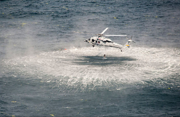 ????8月8日,美國(guó)海軍第七艦隊(duì)旗艦藍(lán)嶺號(hào)在青島外海與中國(guó)海軍舉行聯(lián)合搜救演習(xí)。中國(guó)海軍出動(dòng)了054A型護(hù)衛(wèi)艦鹽城(546)號(hào)和一艘022型隱身導(dǎo)彈艇。