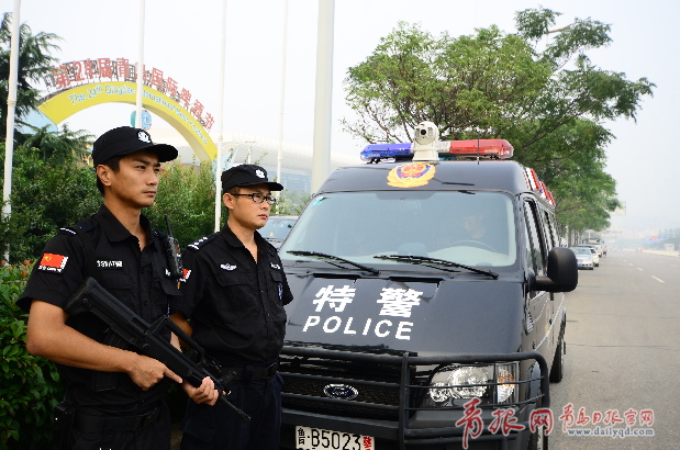 今年啤酒節(jié)安保特別嚴 特警持槍+盾牌穿防刺服巡邏