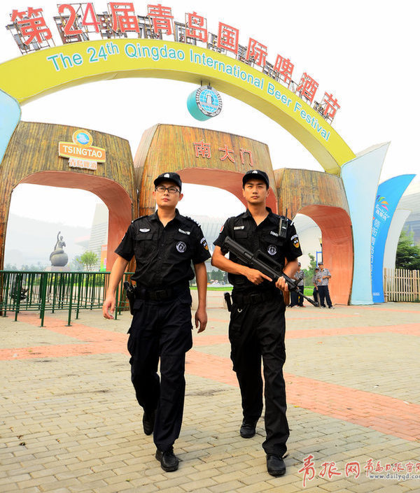 啤酒城安保嚴格,特警持槍巡邏