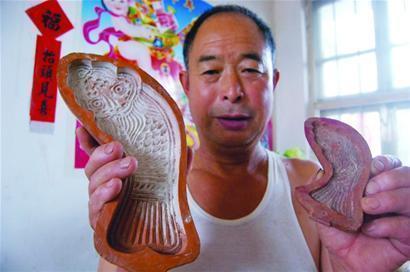 ????李義琴今年60歲,上世紀(jì)70年代,他在村里開辦的窯場(chǎng)干燒磚工。業(yè)余時(shí)間,幾個(gè)工友便坐在一起,研究著搞出點(diǎn)花樣來,燒制過花盆、筷子筒、燭臺(tái)、香爐等。“那時(shí)候,村民做饅頭都用木制榼子,好多人沒錢買,互相之間借著用?!崩盍x琴說,當(dāng)時(shí)大伙就想何不試著燒制魚花榼子?剛開始,燒出的東西不好看,而且容易燒裂,經(jīng)過反復(fù)試驗(yàn),他們果然燒出合格的魚榼。