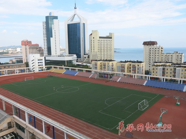 青島一中的操場建在高樓之上,可一邊運動一邊遠(yuǎn)眺大海