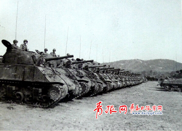 參加受降儀式的美國(guó)坦克部隊(duì)