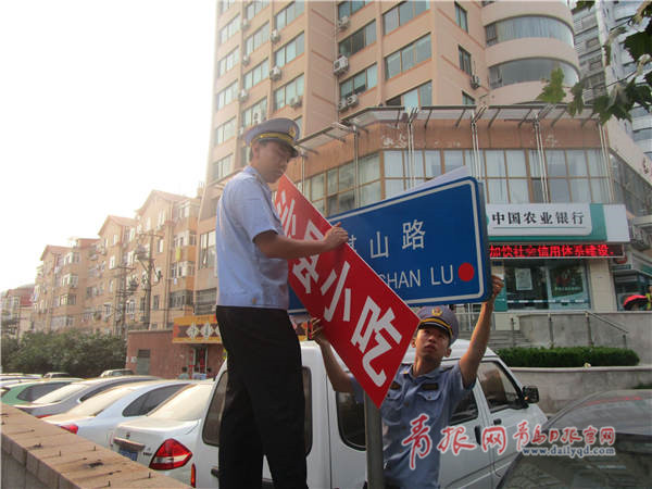 ?接到反饋后,昨日下午市南城管局湛山中隊(duì)就對(duì)小湛山路進(jìn)行了巡查,并在路邊發(fā)現(xiàn)了鮮紅的小廣告牌。執(zhí)法人員走進(jìn)細(xì)看,發(fā)現(xiàn)的確是路邊的路名牌被旁邊的小飯店粘上了廣告牌,“我們現(xiàn)場(chǎng)看到,小廣告牌將路名牌的雙面都擋住了,而且在道路東西兩頭的路名牌上都粘貼了廣告”。如此一來(lái),小飯店是好找了,路名牌卻不見(jiàn)了。執(zhí)法人員立即將廣告牌拆除,還路名牌真面目,并對(duì)粘貼廣告牌的小飯店進(jìn)行了批評(píng)教育,責(zé)令當(dāng)事人不得再犯。“執(zhí)法之后,我們還對(duì)延安三路及附近道路進(jìn)行了巡查,確保市民家門(mén)口的路名牌不會(huì)被商家的廣告遮擋。”湛山中隊(duì)相關(guān)負(fù)責(zé)人告訴記者。