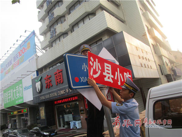 ?今天,市民陸女士致電本報(bào)黨報(bào)熱線(xiàn)(82863300),表示家門(mén)前的小路竟被小飯館改了名。原來(lái),陸女士家住小湛山路附近,但昨日出門(mén)時(shí),卻發(fā)現(xiàn)自己門(mén)前的路名牌,竟然被貼上了“沙縣小吃”的紅色廣告牌,“路牌被完全擋住了,商家做廣告也不能這樣改路名?。 标懪繉?duì)此很氣憤。