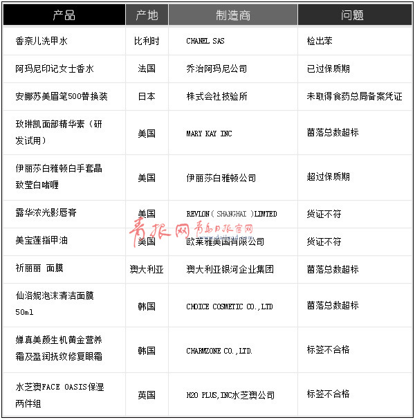 ??? 名牌化妝品質(zhì)量問題再次引起廣泛關(guān)注,昨日(9月22日),國(guó)家質(zhì)檢總局公布今年上半年不合格進(jìn)口化妝品信息,共87批次產(chǎn)品因菌落數(shù)超標(biāo)、超過保質(zhì)期等原因被銷毀或退貨,其中不乏安娜蘇、香奈兒、露華濃等大牌產(chǎn)品。