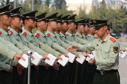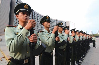 56名青島武警苦練儀仗步 最大國旗方隊十一升旗