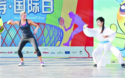 20日,來自捷克的球員哈拉瓦科娃現(xiàn)身武網(wǎng)嘉年華的國際日活動現(xiàn)場,耍了一把正宗武當(dāng)太極。