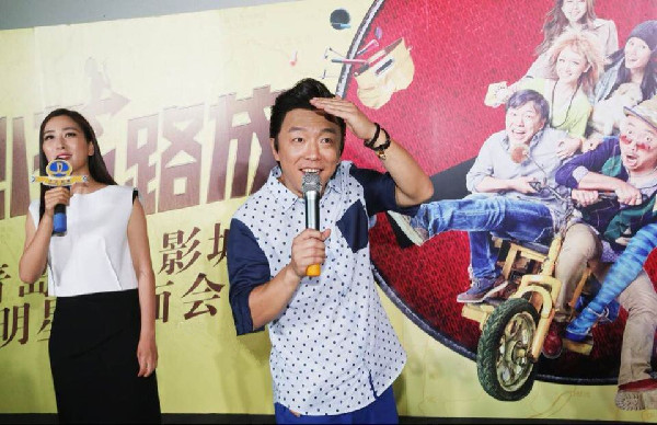 黃渤馬蘇來青島推介新片 秀方言調侃馬蘇