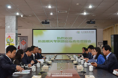 ??? 青報(bào)網(wǎng)訊? 10月9日,韓國(guó)順天市市長(zhǎng)趙忠勛率團(tuán)到訪世園會(huì)。作為中方代表,青島世園會(huì)執(zhí)委會(huì)秘書長(zhǎng)李奉利、副秘書長(zhǎng)高群接待了趙忠勛市長(zhǎng)一行,并對(duì)韓國(guó)代表團(tuán)的到來(lái)表示歡迎。隨后,李奉利秘書長(zhǎng)與趙忠勛市長(zhǎng)進(jìn)行了簡(jiǎn)短的會(huì)晤,雙方就城市未來(lái)發(fā)展方向、世園會(huì)的運(yùn)營(yíng)等問題交換了意見。