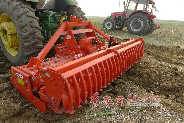 平度古峴鎮(zhèn)昌林農(nóng)機(jī)合作社購買的德國雷肯牌翻轉(zhuǎn)犁也吸引了大家的注意。這臺(tái)犁采用了柵條設(shè)計(jì),降低了犁具的阻力,還有良好的碎土功能,每個(gè)犁鏵前均有一個(gè)小副犁,可以達(dá)到國產(chǎn)犁沒有的埋茬效果。犁后土壤深度達(dá)30厘米以上,可完全打破犁底層?!澳憧?,這臺(tái)翻轉(zhuǎn)犁犁過的地里一點(diǎn)雜草都沒有。而且特別耐用,幾乎不用換零配件?!焙献魃缟玳L崔林介紹。自然,這臺(tái)翻轉(zhuǎn)犁也價(jià)格不菲,為15萬元。昌林農(nóng)機(jī)合作社的外國農(nóng)機(jī)具不止一臺(tái),意大利馬斯齊奧動(dòng)力驅(qū)動(dòng)耙、德國雷肯圓盤耙等國外的適用農(nóng)機(jī)也開始成為合作社的重頭“武裝”。