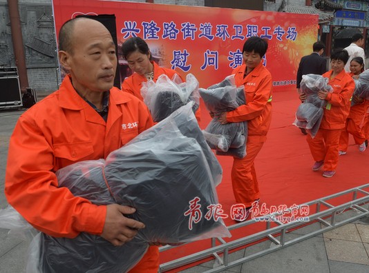 市北情系環(huán)衛(wèi)工人慰問演出 送棉衣過“暖冬”