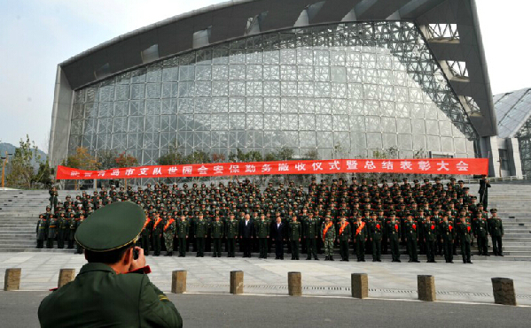 ????26日,400多名在世園會參加安保執(zhí)勤的武警官兵舉行撤警儀式,向執(zhí)勤了200天的世園會哨位告別,其中包括近百名即將退伍的老兵。據(jù)介紹,參加世園會安保執(zhí)勤的武警官兵中,許多人還沒有機會在世園會參觀,撤警儀式結束后,部分武警官兵首次到植物館等場館參觀。