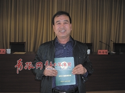 ■萊西市意愿家庭農(nóng)場(chǎng)主馬日元領(lǐng)到了首批農(nóng)村土地經(jīng)營(yíng)權(quán)證。