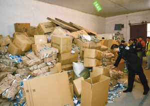 執(zhí)法人員查獲大量用來生產(chǎn)假冒保健食品的原、輔料 ?。ㄓ浾?楊 力 攝)