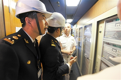 ■海事部門登船辦理出港手續(xù)。周建亮 攝