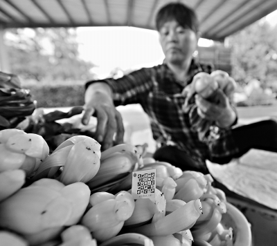 ????在中百柏泉快生菜基地,蔬菜經(jīng)過捆扎包裝后,將“隨身”攜帶二維碼進入市場。掃一下價簽上的二維碼,就能知道手中蔬菜是哪里種的、施了幾次肥、打了幾次藥、何時采摘的、怎么運輸?shù)摹S浾吖妓?攝