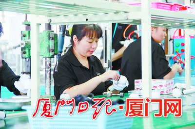 ????集美制造業(yè)企業(yè)多,亟須轉(zhuǎn)型升級,圖為建霖衛(wèi)浴生產(chǎn)線。(劉德英 攝)