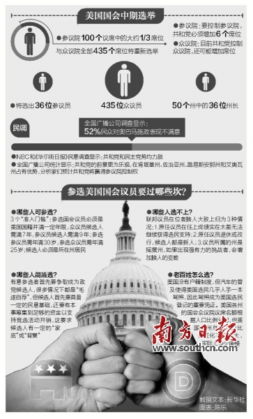 ????美國(guó)4日舉行中期選舉,改選國(guó)會(huì)眾議院435個(gè)席位、參議院100個(gè)席位中的大約三分之一。綜合美國(guó)多項(xiàng)主流民意調(diào)查結(jié)果,外界普遍預(yù)期共和黨將繼續(xù)執(zhí)掌眾議院,并有很大可能從民主黨手中奪回參議院控制權(quán),進(jìn)而掌控國(guó)會(huì)。