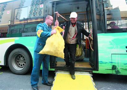 ????20分鐘后,一輛無(wú)障礙電動(dòng)公交車(chē)準(zhǔn)時(shí)抵達(dá)車(chē)站,隨車(chē)安全員王輝將腳踏板抽出,在車(chē)門(mén)和地面形成一個(gè)斜坡。記者注意到,菜農(nóng)們挑著扁擔(dān)有序地上車(chē),王輝則幫著菜農(nóng)們往車(chē)上搬貨?!敖?jīng)過(guò)便民專(zhuān)線(xiàn)近20天的運(yùn)行,菜農(nóng)們的乘車(chē)秩序有著明顯改善,他們不再和原先那樣爭(zhēng)搶了?!彪S車(chē)安全員王輝說(shuō)?!斑M(jìn)入冬季,我們?yōu)楦玫貫椴宿r(nóng)們服務(wù),將‘賣(mài)菜公交’升級(jí)為車(chē)長(zhǎng)12米的電動(dòng)空調(diào)車(chē),既能保證車(chē)內(nèi)寬敞空間,又能開(kāi)空調(diào)吹暖風(fēng)避免他們挨凍?!惫凰淼拦舅淼蓝?duì)隊(duì)長(zhǎng)唐建軍說(shuō),路隊(duì)將繼續(xù)提高服務(wù)質(zhì)量,為各類(lèi)乘客提供更舒適的乘車(chē)環(huán)境,自從開(kāi)通隧道公交便民專(zhuān)線(xiàn)后,再?zèng)]接到一起乘客投訴。