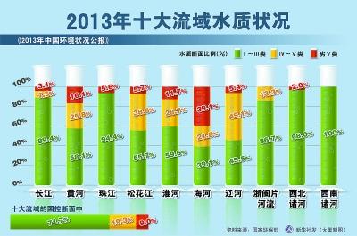 京津冀如此,全國亦然?!?013中國環(huán)境狀況公報》顯示,全國地表水總體輕度污染,其中黃河、淮河、海河、遼河、松花江五大水系水質(zhì)污染,全國4778個地下水監(jiān)測點中,約六成水質(zhì)較差和極差。