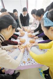 ????在裝飾繪畫課上,一對年輕夫妻引起大家的注意。 35歲的劉文清自我介紹說,她是家庭主婦,丈夫是跆拳道教練,夫妻倆提前一天就買好了染料、水粉紙等繪畫材料。劉文清告訴記者,今年3月份她跟隨丈夫從上?;氐角鄭u,無意間在家門口看到社區(qū)教育學院要開張的宣傳單,夫妻倆人相約一起報名學一學。