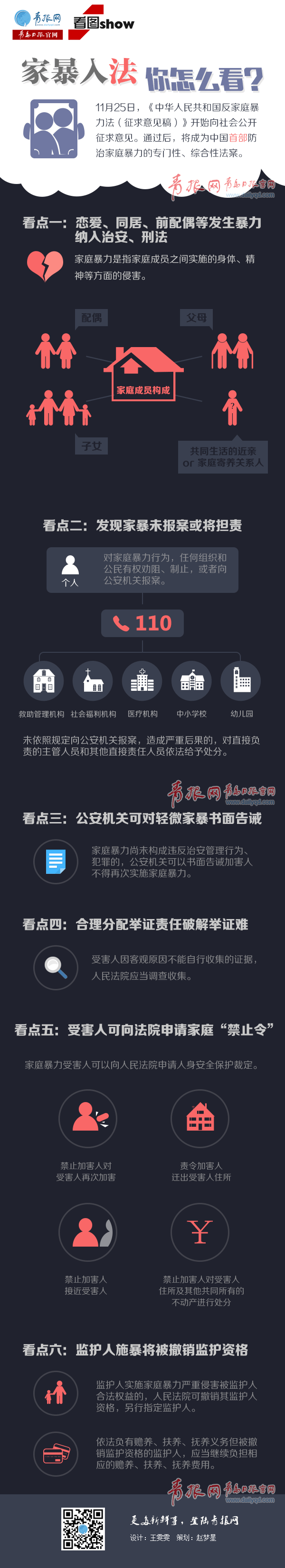 ????11月25日,千家萬(wàn)戶關(guān)切的反家庭暴力工作邁出實(shí)質(zhì)性步伐——《中華人民共和國(guó)反家庭暴力法(征求意見(jiàn)稿)》開(kāi)始向社會(huì)公開(kāi)征求意見(jiàn)。這部法律獲通過(guò)后,將成為中國(guó)首部防治家庭暴力的專門性、綜合性法案。