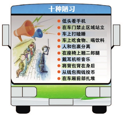 “低頭族”注意!公交車上看手機(jī)很危險(圖)