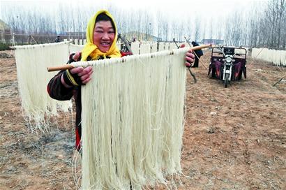 ????大相家村書記相波告訴記者,大相家粉條光滑柔韌、晶瑩剔透、口感爽嫩、風(fēng)味自然,是遠(yuǎn)近聞名的特產(chǎn)。在接下來的三個(gè)月里,全村粉條加工戶開足“馬力”,將生產(chǎn)出近百萬斤粉條。