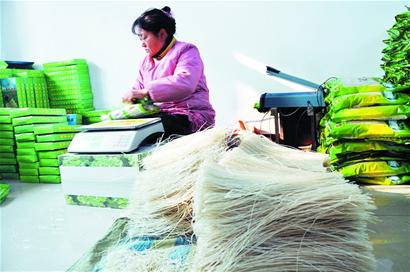 ????“現(xiàn)在我們村男的負(fù)責(zé)加工粉條,銷售粉條幾乎都是女的說了算?!贝迕裢趺励P樂呵呵地告訴記者,今年,她家能生產(chǎn)上萬斤粉條,加工粉條很繁瑣,很多重活都是男的干,她只能幫著打打下手。一旦粉條晾干包裝好后,她們就給以前的一些客戶打電話發(fā)貨。遇到附近村莊趕大集,她們還和村里的婦女將粉條拉到集上去賣。大相家村240多戶村民有一半從事紅薯粉條加工,像王美鳳一樣,村里近百名賢內(nèi)助搖身成了“女掌柜”。不少村民家中的子女大學(xué)畢業(yè)后,也加入粉條銷售中來,打算嘗試做電商,將大相家粉條賣上淘寶。