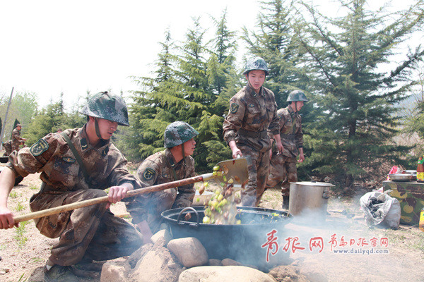 此次冬訓(xùn)重點(diǎn)針對(duì)戰(zhàn)士們野戰(zhàn)生存能力不足的問題 圖為戰(zhàn)士們正在野炊