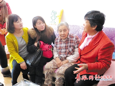 ??? ■源海底涼粉、萬里江花生油、曹村草莓、璞真布鞋……昨日(1月14日),青島市婦聯(lián)女大學(xué)生創(chuàng)業(yè)聯(lián)盟的“女老板”們帶著自己企業(yè)的產(chǎn)品,來到本報(bào)愛心陪伴空巢老人活動(dòng)的空巢老人王玉霞和蔡鳳修家中,提前為老人們送上春節(jié)祝福。女大學(xué)生創(chuàng)業(yè)聯(lián)盟共有會(huì)員106名,大家通過創(chuàng)業(yè)圓了自己的企業(yè)夢(mèng),會(huì)長(zhǎng)馮曉叢表示,聯(lián)盟中的每一位姐妹都愿意奉獻(xiàn)一份愛心,希望讓空巢老人感受到來自社會(huì)的關(guān)懷和溫暖。 張 晉 攝影報(bào)道