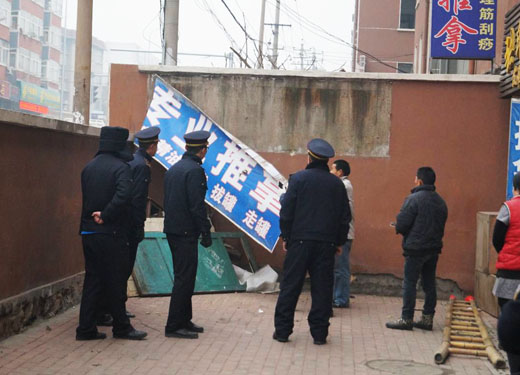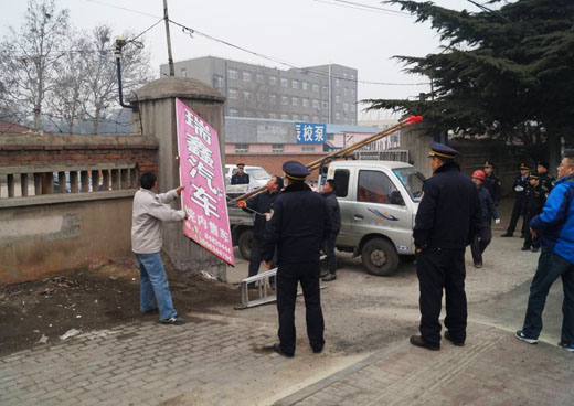 第二步在拆除過(guò)程中,堅(jiān)持“兩個(gè)一律”,對(duì)墻體廣告一律拆除,線桿高空廣告一律清除,并且杜絕新的增量。整條路段是自西向東逐戶推進(jìn),公平執(zhí)法得到各業(yè)主的稱贊,有很多業(yè)主看到城管公平執(zhí)法主動(dòng)自己動(dòng)手拆除。