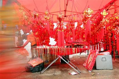 昨天的李村大集上對聯(lián)、福字、干貨等過年的物件成了搶手貨