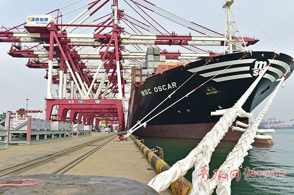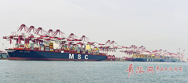 全球最大集裝箱船靠泊青島港 載箱量再破記錄